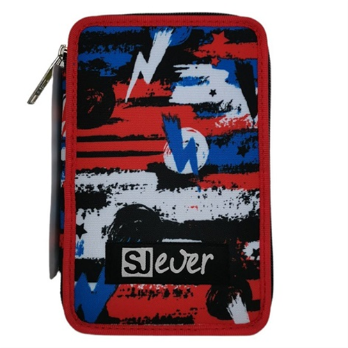 Ciao! Sono il coloratissimo Astuccio 3 zip SJ Gang. Dotato di 3 scomparti completi di tutto il materiale necessario per fare al meglio i tuoi lavori di scuola, abbinami a uno zaino o a un trolley SJ Gang. Caratteristiche Tecniche Dimensioni 20 x 12,5 x 7 cm Altre caratteristiche CONTENUTO: 1 penna cancellabile blu, 1 penna rossa, 18 pastelli a colori, 18 pennarelli, 1 colla stick, 1 matita, 1 gomma, 1 temperino, 1 righello, 1 goniometro, 1 forbice. Patch in materiale lenticolare. Tasche Triplo scomparto. Tessuto Poliestere