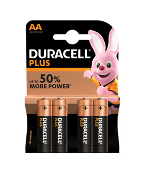 Duracell - Plus AA, Batterie Stilo Alcaline, confezione da 4, 1.5 volt LR06 MX1500 Le Batterie Duracell Plus AA forniscono energia affidabile e duratura per tutti i tuoi dispositivi fino al 50% di energia in più*. Sono disponibili nei formati AA, AAA, C, D, 4,5V e 9V, le Batterie Duracell Plus hanno un rivestimento di Superior Nylon che aiuta a prevenire le fuoriuscite e protegge tutti i tuoi dispositivi di uso quotidiano preferiti come torce, telecomandi, orologi, giocattoli, console e molto altro... la tecnologia Duralock mantiene la piena energia delle tue batterie Duracell fino a 10 anni nella loro confezione**. Duracell ed il suo famoso Coniglietto offrono batterie ad alta performance da oltre 50 anni. Nel 1969, Duracell ha preso parte alla missione Apollo 11 diventando così la prima batterie sulla luna. (*performance di longevità calcolata come differenza rispetto alla Durata Media Minima calcolata nel test 2015 IEC su fotocamera digitale; i risultati possono variare a seconda del dispositivo e delle modalità di utilizzo.