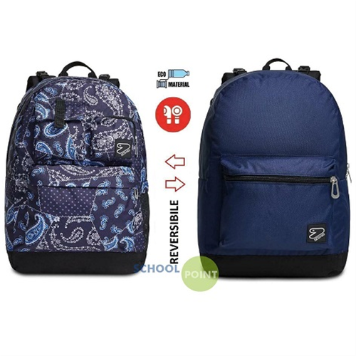 Zaino reversibile con earphpnes wireless: un lato è in fantasia, l'altro in tinta unita