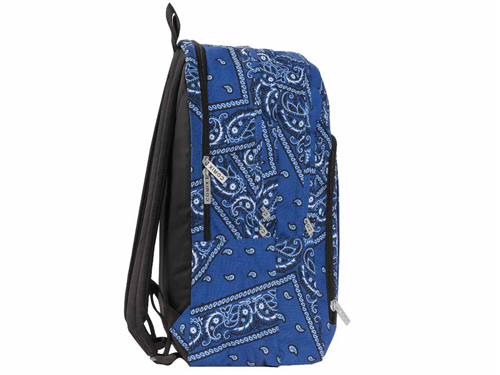Zaino organizzato con triplo scomparto con alloggio porta PC. Schienale imbottito e rinforzato, spallacci imbottiti e regolabili. Maxi tasca frontale con zip. Collezione All Over in poliestere alta densità, con etichetta e tirazip in metallo cromato con logo forato e inciso. Dimensioni: 31 x 42 x 19,5cm