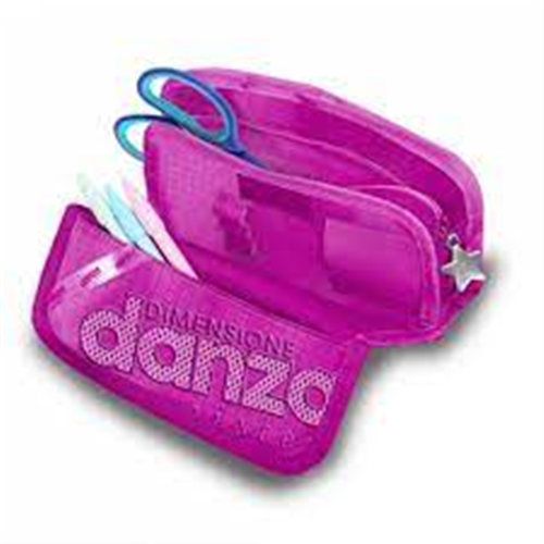 Bustina porta penne a due cerniere avente una terza tasca con chiusura in feltro.