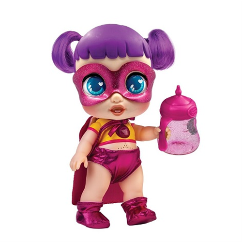 CONTENUTO • 1 Super Cute Sof • 1 Biberon magico con luci • 1 Set di vestitini reversibili (bebè - supereroina) • 1 Maschera • 1 Ciuccio • 1 Pettine • 1 Spazzola