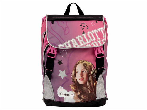 Lo zaino di Charlotte M, estensibile con patella personalizzata, segue lo stile della youtuber più amata dalle bambine.