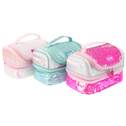 Grazioso e compatto contenitore per il pranzo rivestito di morbido tessuto cangiante e finiture in paillettes reversibili girabrilla. Unisce l'utilità con uno stile glamour unico disponibile in tre varianti-colore. La lunch box è dotata di 2 scomparti con chiusura a cerniera zip e di una comoda maniglia in tessuto cucita nella parte superiore del contenitore. L’interno è rivestito con tessuto termico resistente all’acqua e può contenere diversi alimenti. La sua forma compatta rende la sacca porta pranzo facilmente trasportabile. E' ideale per trasportare bevande e alimenti a scuola, in campeggio, all’asilo, al mare, in palestra. .