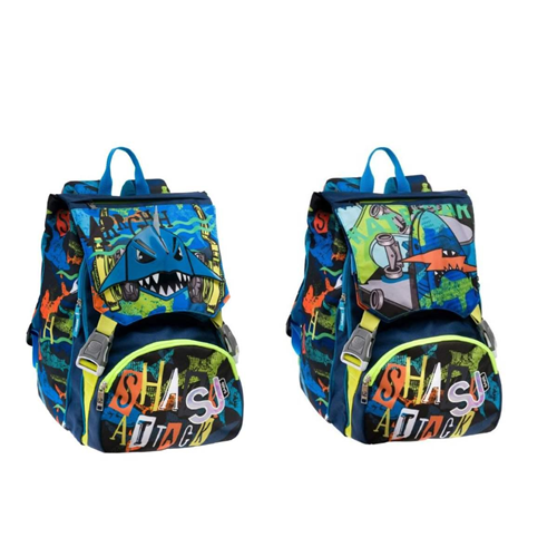 Ciao! Sono il nuovo zaino estensibile ANIMALI FLIP-3D DA SJ BOY! Grazie al mio FLIP SYSTEM puoi divertirti a cambiarmi aspetto ogni volta che vuoi! E con la pattina in 3D vedrai spuntare un simpatico squalo dallo zaino! Sfoglia le pattine e crea combinazioni diverse! Ho un doppio scomparto spazioso, di cui puoi aumentare facilmente la capienza tramite le zip laterali per poter accogliere e distribuire in modo ottimale anche i carichi più pesanti. Sono dotato di una tasca frontale, ma soprattutto sono davvero comodo da indossare sulle spalle, grazie allo schienale Ergosystem preformato e agli spallacci imbottiti e traspiranti. In più, il fondo integrato mantiene la mia struttura inalterata, garantendo la stabilità del contenuto anche a pieno carico.