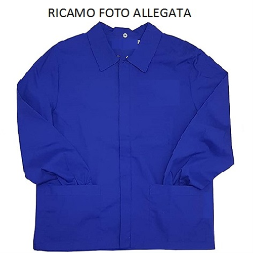 Grembiule blu, adatto alla scuola primaria, con maniche lunghe ed elasticizzate sui polsi. Chiusura tramite zip.