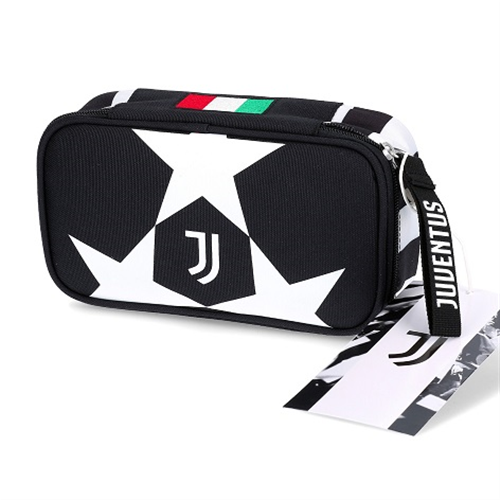 L’astuccio Quick Case Juve ha al suo interno tutto il materiale necessario per la tua giornata di scuola: 1 penna cancellabile Tratto Cancellik con inchiostro di colore blu, 1 penna a sfera Tratto 1Uno Grip con inchiostro di colore rosso, 18 pastelli Fila Giotto Laccato Tondo, 18 pennarelli Fila Giotto Turbo Color, 1 colla stick Fila, 1 matita grafite, 1 gomma, 1 temperino, 1 righello trasparente, 1 goniometro trasparente, 1 forbice in metallo con maniglia in plastica. Abbinalo con uno zaino o un trolley Inter.