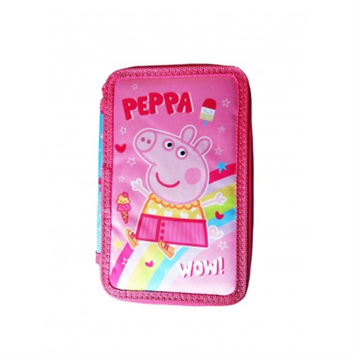 L'astuccio si compone di 3 scomparti, rifinito ognuno con una chiusura a zip, il cui contenuto è così ripartito: nel primo reparto troverete 1 matita, 1 penna Rossa, 1 penna Blu, 1 gomma, 1 temperamatite, 1 righello, 1 squadretta e 1 tabella con lo schema delle ore e dei giorni della settimana in cui poter appuntare l'orario scolastico; nel secondo 18 matite colorate; nel terzo infine 18 pennarelli colorati Giotto Turbo Color. Dimensioni: 20 x 13 x 6 Cm.