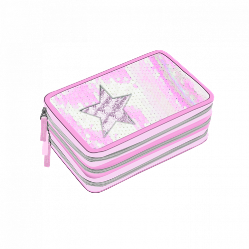 Astuccio 3 zip PlayToy - con paylettes girabrilla - rosa con stella
