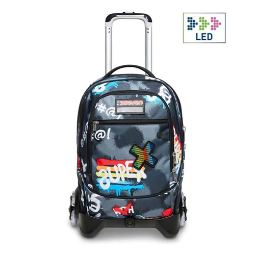 Il Trolley Seven Jack-3WD è dotato di un fantastico cuore led che si illumina a tempo di musica! Lo attivi col pulsante ed è ricaricabile tramite USB. Con un sistema a 3 ruote che agevola la salita dei gradini e personalizzato con dettagli curati nei minimi particolari, unisce stile e versatilità. In poche semplici mosse, infatti, da trolley diventa zaino e viceversa. Il carrello ha fondo rinforzato e protezioni angolari per dare stabilità al trolley e protezione al contenuto. Lo sganci e hai uno zaino lavabile, maxi capiente, dotato di tasca frontale e comodo da indossare grazie a schienale e spallacci imbottiti. Spallacci che, se lo usi come trolley, possono essere a scomparsa o, grazie al CROSSOVER SYSTEM, possono sollevarsi automaticamente tirando su la doppia barra telescopica. In questo modo i nastri non strisciano a terra! La doppia barra telescopica è resistente e ha due regolazioni in altezza.