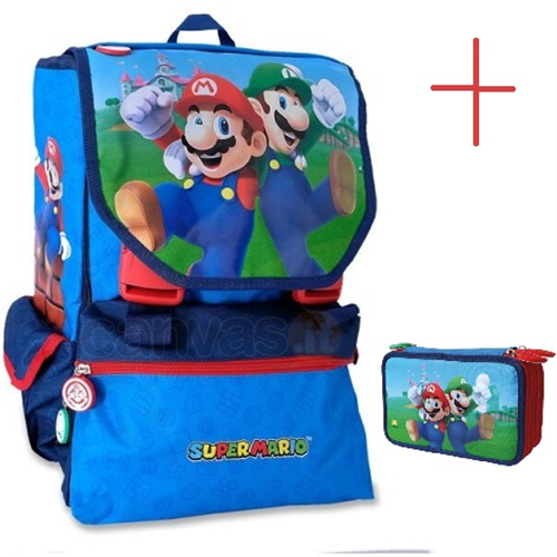 School Pack Super Mario - Zaino estensibile + astuccio 3 zip completo