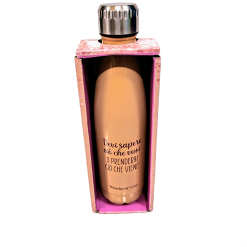 Splendida BORRACCIA in acciaio. Comoda, sana e robustissima: costruita in acciao INOX 304, non contiene BPA. Mantieni le tue bevande calde fino a 6 ore e tieni in fresco i tuoi drink per 6! Non sporca perchè una volta chiusa è a tenuta stagna... niente paura di gocciolare nello zaino. Non utilizzare per contenere energy drinks e bevande contenenti alcolici. Dimensioni: circa 26,5 x 7 x 7 cm. Volume: circa 500 ml.