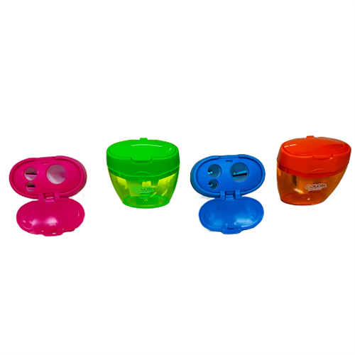 Temperino con tappuccio che previene l'uscita dei trucioli.