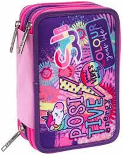 Ciao! Sono il coloratissimo Astuccio 3 zip SJ Gang. Dotato di 3 scomparti completi di tutto il materiale necessario per fare al meglio i tuoi lavori di scuola, abbinami a uno zaino o a un trolley SJ Gang.