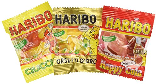 - mini confezioni di specialità Haribo in sacchettini da 12,5g