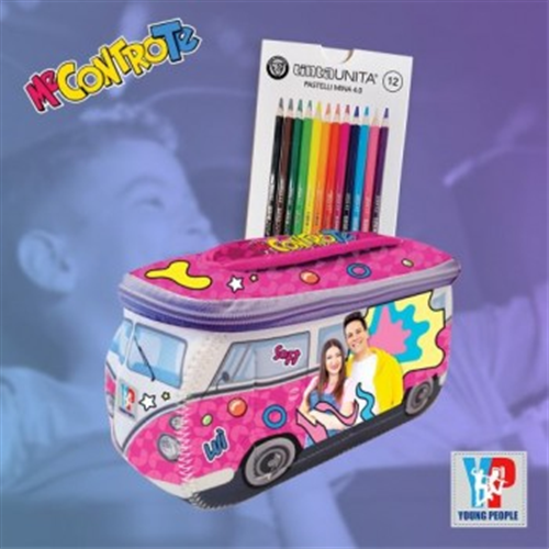 Bustina Pulmino Me Contro Te 2022/2023 - con scatola 12 pastelli TintaUnita - fucsia