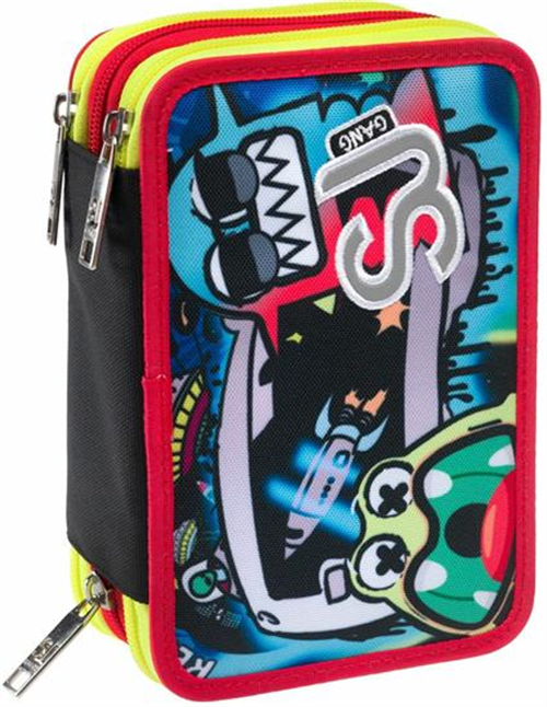 Ciao! Sono il coloratissimo Astuccio 3 zip SJ Gang. Dotato di 3 scomparti completi di tutto il materiale necessario per fare al meglio i tuoi lavori di scuola, abbinami a uno zaino o a un trolley SJ Gang.