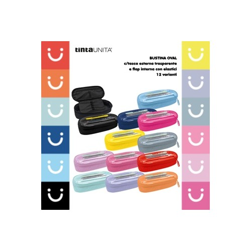 Astuccio ovale organizzato con tasca contenente: una matita HB superior quality e un evidenziatore a penna Tintaunita
