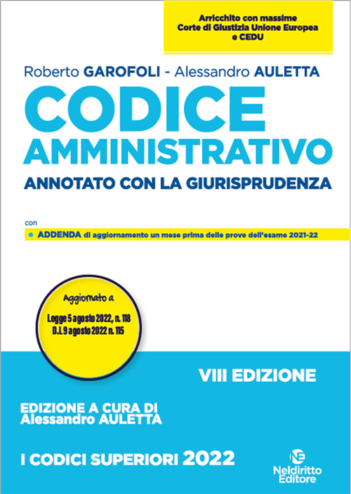 “I Codici Superiori” sono il risultato dell’impegno profuso da giuristi autorevoli e del confronto intellettuale tra Avvocati, Professori e Magistrati. “I Codici Superiori” annotati con giurisprudenza si presentano come uno strumento indispensabile per la professione e la redazione di atti e pareri. L’Opera è il frutto di un lavoro meticoloso teso a conferirle omogeneità e uniformità ed agevolare il professionista nella consultazione della medesima. Il Codice è aggiornato alle più recenti novità legislative introdotte e alle questioni giurisprudenziali emerse. Il Codice presenta aspetti unici e qualificanti quali: • l’aggiornamento completo dell’intero apparato normativo; • la completezza e ricchezza delle questioni trattate; • la particolarissima attenzione dedicata alla elaborazione dei sommari sotto le singole disposizioni; • l’articolata e funzionale struttura dei sommari e la trattazione dei singoli profili che consentono di individuare agevolmente gli orientamenti giurisprudenziali sul tappeto e di ricostruire i percorsi logici agli stessi sottesi; • la struttura grafica che favorisce un’agevole consultazione; • la particolare visibilità data alle decisioni più recenti e a quelle delle Sezioni Unite della Cassazione e dell’Adunanza Plenaria del Consiglio di Stato; • il costante aggiornamento giurisprudenziale; • l’attenzione dedicata anche alla giurisprudenza di merito; • gli indici dettagliatissimi che consentono l’immediata individuazione delle questioni su cui si intende svolgere la ricerca.