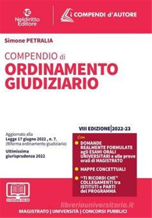 l volume si inserisce nella collana "I COMPENDI D'AUTORE", ideata e strutturata appositamente per tutti coloro che si apprestano alla preparazione degli esami orali per l'università e per l'abilitazione alla professione forense o ancora per le prove dei principali concorsi pubblici. L'opera è frutto di una felice combinazione tra gli aspetti caratteristici, da un lato, della tradizionale trattazione manualistica, di cui conserva la struttura e l'essenziale impostazione nozionistica, e, dall'altro, della più moderna trattazione "per compendio", di cui fa proprie la capacità di sintesi e la schematicità nell'analisi degli istituti giuridici. Al contempo, si è avuto cura nell'evitare sia l'eccessivo appesantimento teorico e dogmatico della manualistica classica, controproducente per chi deve comprendere e memorizzare "in fretta", sia l'estrema sintesi dei vecchi modelli di compendio, spesso "nemica" di un'agevole e chiara comprensione delle questioni trattate e quasi sempre causa di lacune nella preparazione. Ne è derivato un modello di "terza generazione" di testi per la preparazione alle prove d'esame, destinato inevitabilmente a prevalere nel futuro scenario della formazione di studi, in cui l'imperativo è possedere tutte le conoscenze necessarie e sufficienti per raggiungere brillantemente l'obiettivo finale. A tal fine, le direttrici lungo cui si è sviluppata la collana sono state chiarezza nella forma e completezza nella sostanza. Nella forma, l'opera coniuga, infatti, semplicità ed eleganza espositiva, cercando di soddisfare l'aspirazione di quanti ambiscono a memorizzare velocemente, attraverso l'ausilio di espedienti grafici quali l'utilizzo di grassetti e corsivi per i concetti-chiave di ogni singolo istituto o ancora tramite l'esposizione "per punti" delle principali tesi emerse in dottrina e in giurisprudenza sulle questioni più problematiche. Nella sostanza, la chiara comprensione degli istituti è agevolata da una trattazione esaustiva, ma allo stesso tempo sintetica, delle nozioni giuridiche di base e degli aspetti più "sensibili" in prospettiva concorsuale. I problemi giuridici sono stati inquadrati equilibrandoli tra la loro profondità storica (tramite un contenuto richiamo ai principali orientamenti dottrinari) e la loro attualità concreta (tramite un'attenta selezione delle decisioni della giurisprudenza, segnalate in appositi "Focus" giurisprudenziali). Infine, non sembra inutile ricordare, a chi si appresta ad affrontare le prove d'esame, che sempre homo faber fortunae suae, perché la fortuna, oltre a dipendere dalle favorevoli "stelle" del destino, risiede anche e soprattutto nel munirsi degli strumenti giusti per procurarsela. Strumenti che siamo certi di aver fornito - con questa nuova collana di compendi - per aiutare la "fortuna" di molti aspiranti avvocati e di molti concorsisti.