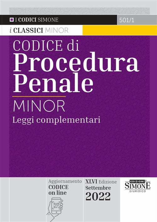 Questa nuova edizione del Codice di Procedura Penale minor viene dato alle stampe aggiornato a tutte le modifiche intervenute in materia processuale penale. Il testo, pertanto, ha lo scopo di offrire uno strumento essenziale e indispensabile di studio e/o lavoro per quanti (studenti, avvocati, magistrati) abbiano la necessità di un codice pratico, maneggevole e di facile consultazione. Una mirata ed aggiornata selezione di leggi complementari (Collaboratori di giustizia, Giudice di pace, Mafia, Mandato d?arresto europeo, Minorenni, Notificazioni e processo telematico, Il Processo penale durante l?emergenza epidemiologica da Covid-19, Spese di giustizia) fornisce, infine, una panoramica completa e aggiornata del rito penale. Un utile corredo di indici: sistematico, analitico-alfabetico e un dettagliato cronologico arricchiscono e completano il volume.