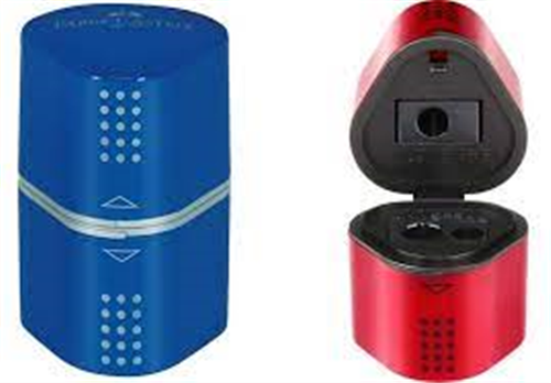 Temperamatite Faber Castell Grip color 183801 - a tre fori - con doppio contenitore - rosso