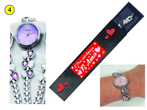 CASSA IN METALLO, CINTURINO IN ACCIAIO CON INSERTO CUORI