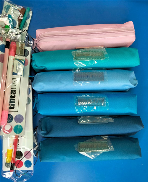 Bustina rettangolare TintaUnita Excellent + matita + gomma + Brush + temperino - azzurro