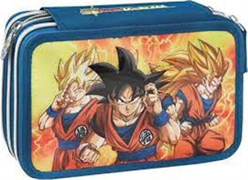 Astuccio Corredo 3 zip contenente 18 pennarelli, 18 matite colorate, matita, gomma, righello, temperino con serbatoio, forbici con punta arrotondata, squadra, penna cancellabile blu e rossa ed etichette porta-nome.