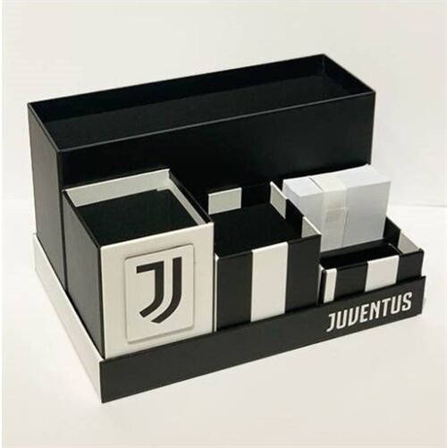 Portapenne e porta accessori da scrivania in cartone resistente pressato.
