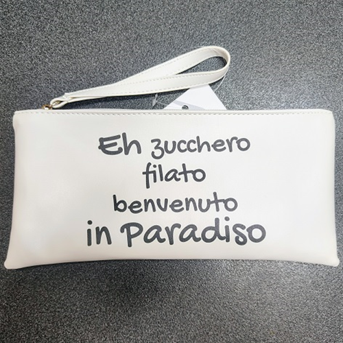 Pochette lunga con manico bianca in ecopelle Mare Fuori - 28 x 13 cm - Eh zucchero filato benvenuto in Paradiso
