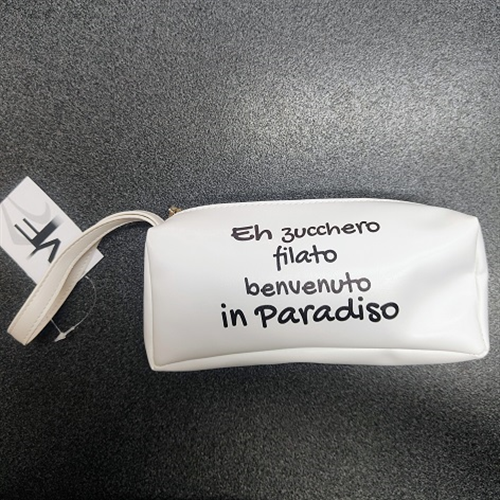 Pochette tonda con bracciale bianca in ecopelle Mare Fuori - 21 x 10 x 5 cm - Eh zucchero filato benvenuto in Paradiso