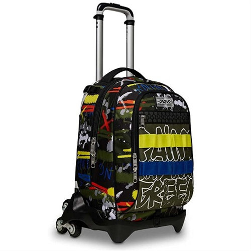 Il Trolley Seven Jack-3WD è uno zaino con carrello sganciabile dotato di sistema a 3 ruote per lato. Lo zaino è capiente, da riempire con quello che ti serve: libri, quaderni per scuola, o il cambio per l'allenamento. Schienale e spallacci imbottiti inoltre rendono lo zaino comodo da indossare sulle spalle, mentre se lo agganci al carrello dotato di doppia barra telescopica, protezioni angolari e fondo rinforzato è maneggevole, stabile, pratico e sicuro da trascinare come trolley.