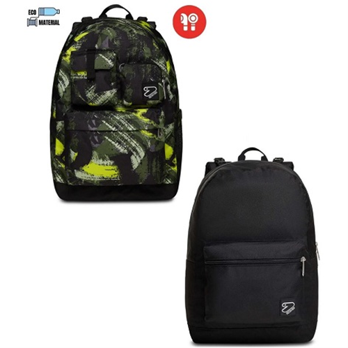 Con questo zaino reversibile Pockets Seven The Double, che include gli EARPHONES WIRELESS, hai 2 zaini in 1: uno in fantasia, l’altro in tinta unita. Per rigirarlo tutte le volte che vuoi, staccando lo schienale, ti bastano 3 semplici mosse. È realizzato in tessuto 100% poliestere riciclato, certificato GRS, ricavato da 32 bottiglie in PET da 500 ml ciascuna, garantendo tutti gli standard qualitativi dei nostri materiali. Entrambi i lati, in fantasia e in tinta unita, hanno una comoda tasca frontale e quello in fantasia ha anche 1 tasca nella parte superiore e una tasca laterale porta borraccia. Infine lo schienale è imbottito e insieme agli spallacci imbottiti e traspiranti rende lo zaino comodo da indossare sulle spalle.