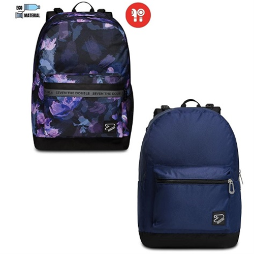 Con questo zaino reversibile Seven The Double, che include gli EARPHONES WIRELESS, hai 2 zaini in 1: il primo in fantasia con zip rifrangente, l’altro in tinta unita. Per rigirarlo tutte le volte che vuoi, staccando lo schienale, ti bastano poche semplici mosse. È realizzato in tessuto 100% poliestere riciclato, certificato GRS, ricavato da 29,5 bottiglie in PET da 500 ml ciascuna, garantendo tutti gli standard qualitativi dei nostri materiali. Entrambi i lati, in fantasia e in tinta unita, hanno una comoda tasca frontale e quello in fantasia ha anche una tasca laterale in rete ed elastico porta borraccia. Infine lo schienale è imbottito e, insieme agli spallacci imbottiti e traspiranti, rende lo zaino comodo da indossare sulle spalle.