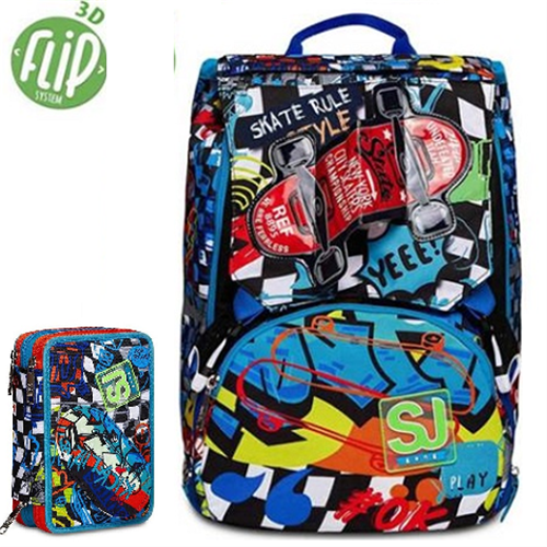 School Pack SJ Seven - Zaino + astuccio 3 zip - Gang 20C202322 - estensibile – Trickflip Boy