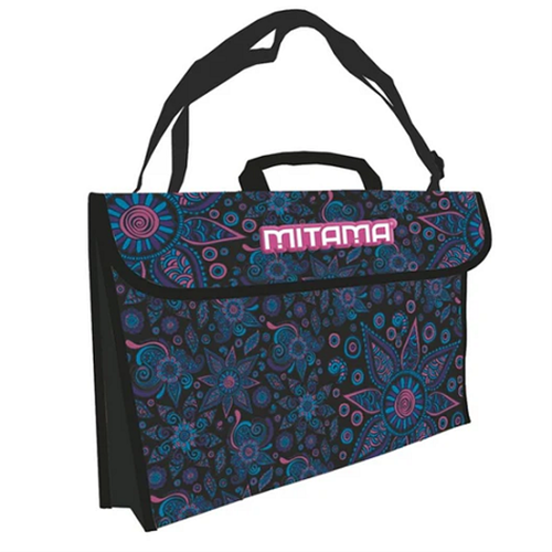 Valigetta in tessuto con struttura rigida, chiusura con velcro, maniglia e tracolla, interno rivestito.
