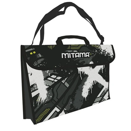 Valigetta in tessuto con struttura rigida, chiusura con velcro, maniglia e tracolla, interno rivestito.