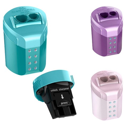 Il doppio temperamatite RollOn di Faber-Castell è un temperamatite richiudibile in modo che la borsa della scuola rimanga pulita. Inoltre, l'affilatrice doppia RollOn ha un meccanismo di rotazione nell'unità di affilatura, che è molto facile da usare. In quanto membro della serie Sparkle, il doppio temperamatite RollOn è inoltre progettato con una serie di tipici elementi glitter che attirano l'attenzione sulla scrivania e durante l'affilatura. L'affilatoio doppio RollOn è disponibile in diversi colori, seleziona qui la tua variante preferita.