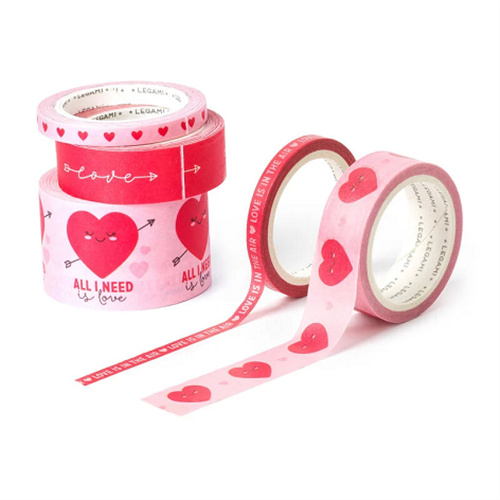Tape by Tape è il set di 5 coloratissimi nastri adesivi in carta di Legami per rendere ogni pacchetto veloce, pratico e romanticissimo. Ogni nastro è diverso in spessore e fantasia, per 5 pucciosissimi metri di cuori e paroline dolci.