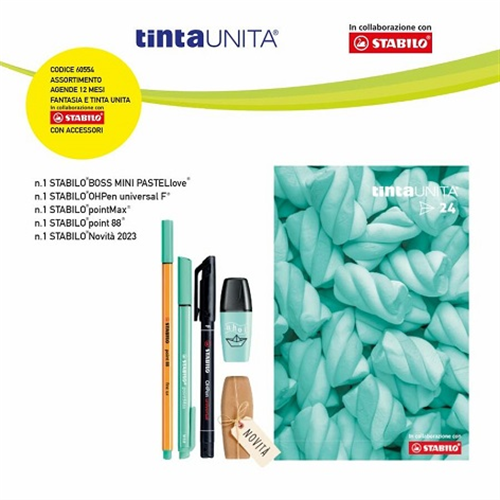 L'esclusivo diario TintaUNITA in collaborazione con Stabilo è accompagnato da un set di prodotti Stabilo all'interno di una copertina con zip in plastica dove potrai inserire anche il tuo smartphone.
