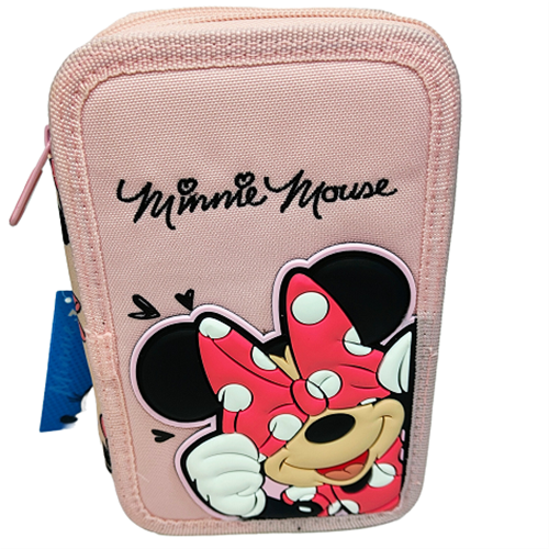 Astuccio 3 zip Minnie con fantasia in 3D - rosa