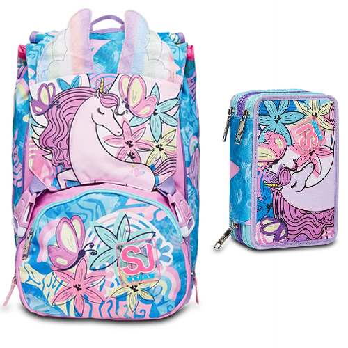 Ciao! Sono UNIWING, lo zaino estensibile SJ GANG con cui vai a scuola, ma puoi anche giocare. Grazie al mio SISTEMA AD ARIA attivabile dallo spallaccio con pulsante a pressione, infatti, puoi divertirti a muovere le mie fantastiche ALI GLITTER DI UNICORNO! Ho un doppio scomparto spazioso, di cui puoi aumentare facilmente la capienza tramite le zip laterali per poter accogliere e distribuire in modo ottimale libri, quaderni e tutto ciò che ti serve per la tua giornata, potendo sfruttare anche la tasca frontale. Inoltre, sono davvero comodo da indossare sulle spalle, grazie a schienale e spallacci confortevoli. In più, il fondo integrato mantiene la mia struttura inalterata, garantendo la stabilità del contenuto anche a pieno carico.