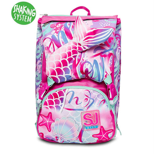 Ciao! Sono SEA BEAUTY, lo zaino estensibile SJ GANG con cui vai a scuola, ma puoi anche giocare. Grazie al mio SHAKING SYSTEM, infatti, ti basta premere il tasto ON/OFF sulla pattina per far muovere la mia CODA DI SIRENA 3D! Ho un doppio scomparto spazioso, di cui puoi aumentare facilmente la capienza tramite le zip laterali per poter accogliere e distribuire in modo ottimale libri, quaderni e tutto ciò che ti serve per la tua giornata, potendo sfruttare anche la tasca frontale. Inoltre, sono davvero comodo da indossare sulle spalle, grazie a schienale e spallacci confortevoli. In più, il fondo integrato mantiene la mia struttura inalterata, garantendo la stabilità del contenuto anche a pieno carico.