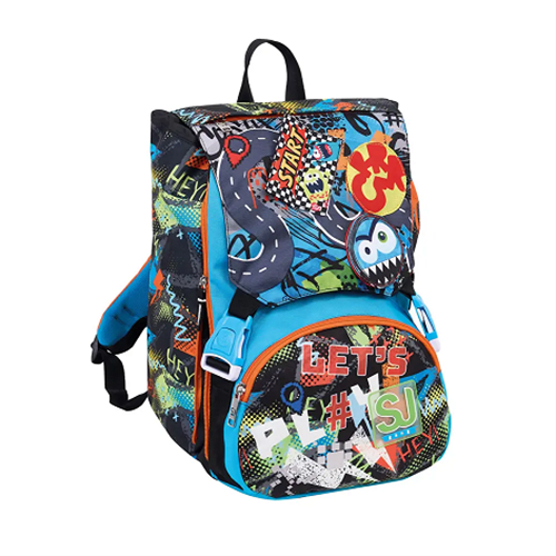 Ciao! Sono RUSHPACK, lo zaino estensibile SJ GANG con cui vai a scuola, ma puoi anche giocare. Grazie al mio FLIP SYSTEM, infatti, puoi divertirti a cambiarmi aspetto sfogliando i miei 2 mini flip sulla pattina ogni volta che vuoi! Ho un doppio scomparto spazioso, di cui puoi aumentare facilmente la capienza tramite le zip laterali per poter accogliere e distribuire in modo ottimale libri, quaderni e tutto ciò che ti serve per la tua giornata, potendo sfruttare anche la tasca frontale. Inoltre, sono davvero comodo da indossare sulle spalle, grazie a schienale e spallacci confortevoli. In più, il fondo integrato mantiene la mia struttura inalterata, garantendo la stabilità del contenuto anche a pieno carico.