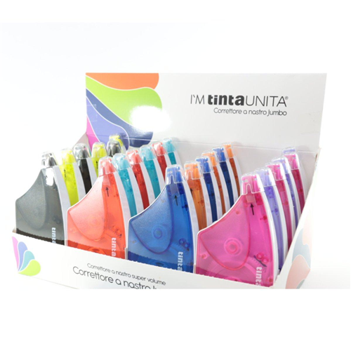 Correttore a Nastro TINTA UNITA con tappo Grazie al suo design assicura manegevolezza e praticità nell'applicazione. Altamente coprente, Svolgimento frontale, applicabile su tutti i tipi di carta Subito riscrivibile e pulito lunghezza nastro 20 metri, larghezza naastro 5 mm Purtroppo, relativamente a quest'articolo non è possibile scegliere la colorazione che verrà inviata causualmente.