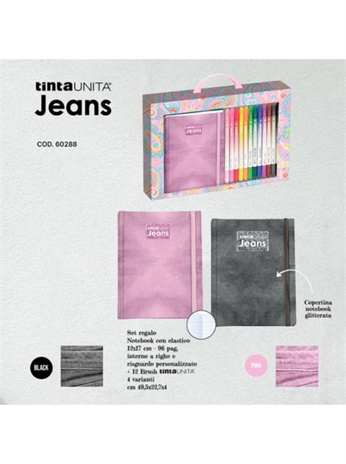 Set notebook + 12 pennarelli brush TintaUnita Jeans - rosa glitter