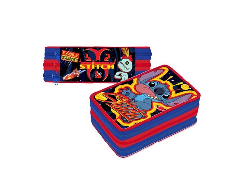 Astuccio per scuola elementare e asilo e media per bambino e ragazzo. Presenta 3 zip con stampa di Disney Lillo e Stitch Contenuto 44 pezzi: