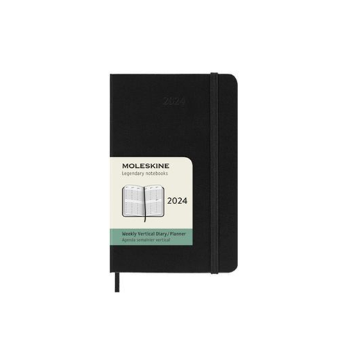 Agenda settimanale verticale/notebook Moleskine 2024 - 12 mesi - pocket 9 x 14 cm - copertina rigida - nero