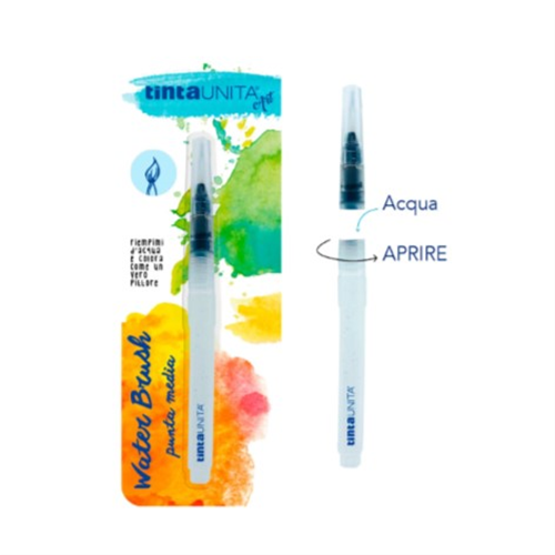 Pennelli Water Brush ideali per dipingere con facilità. Svita, aggiungi l’acqua e inizia a creare come un vero pittore. Disponibile in confezione singola con punta media e in confezione 3 punte diverse: fine – media – piatta